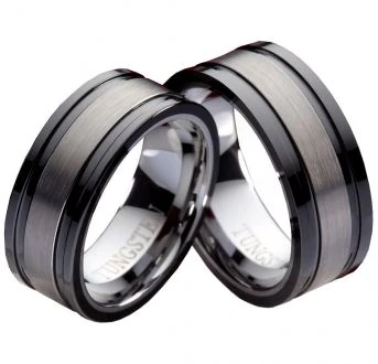 Herren-Ehering Wolframcarbid, 8 Mm, Flach, Court-Form, Gebürstet